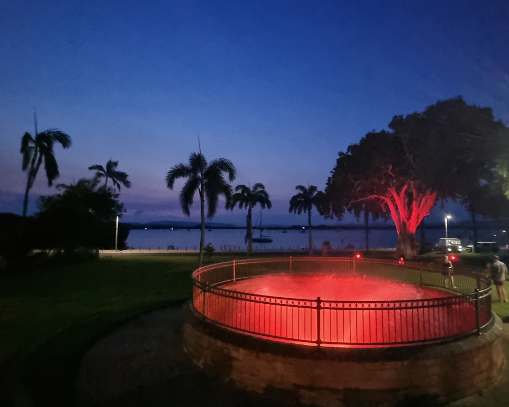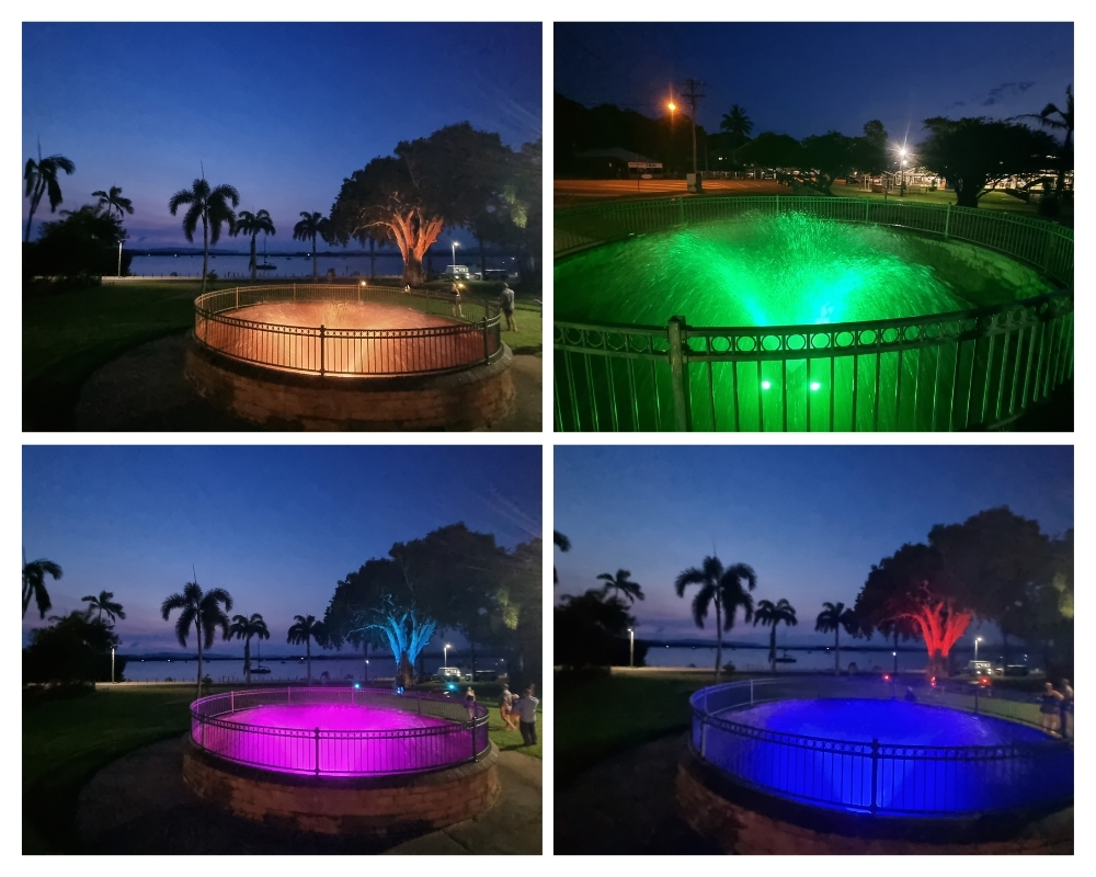 The Huzgroup Electrical team of skilled Cairns electricians were thrilled to deliver this transformative lighting project for Lions Park in Cooktown. Cook Shire Council engaged us to design and install decorative RGB lighting for a large tree in the park and create a custom fountain with submersible RGB lighting for the town well.